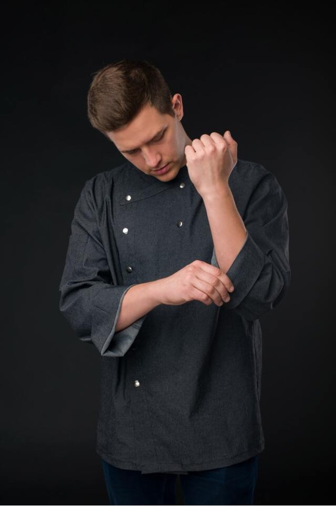 Китель відшитий з натурального Деніму, має довгі рукава та приталену посадку на тілі. Фіксується за допомогою, нержавіючих, металевих кнопок. Для покращення комфорту, ми вшили на спині складку, щоб під час роботи на кухні, ваші рухи не сковувались . Одягаючи наш Китель, ваш образ ставатиме вишуканим, завдяки особливому комірцю-стійці.Відгуків про цей товар ще не було.